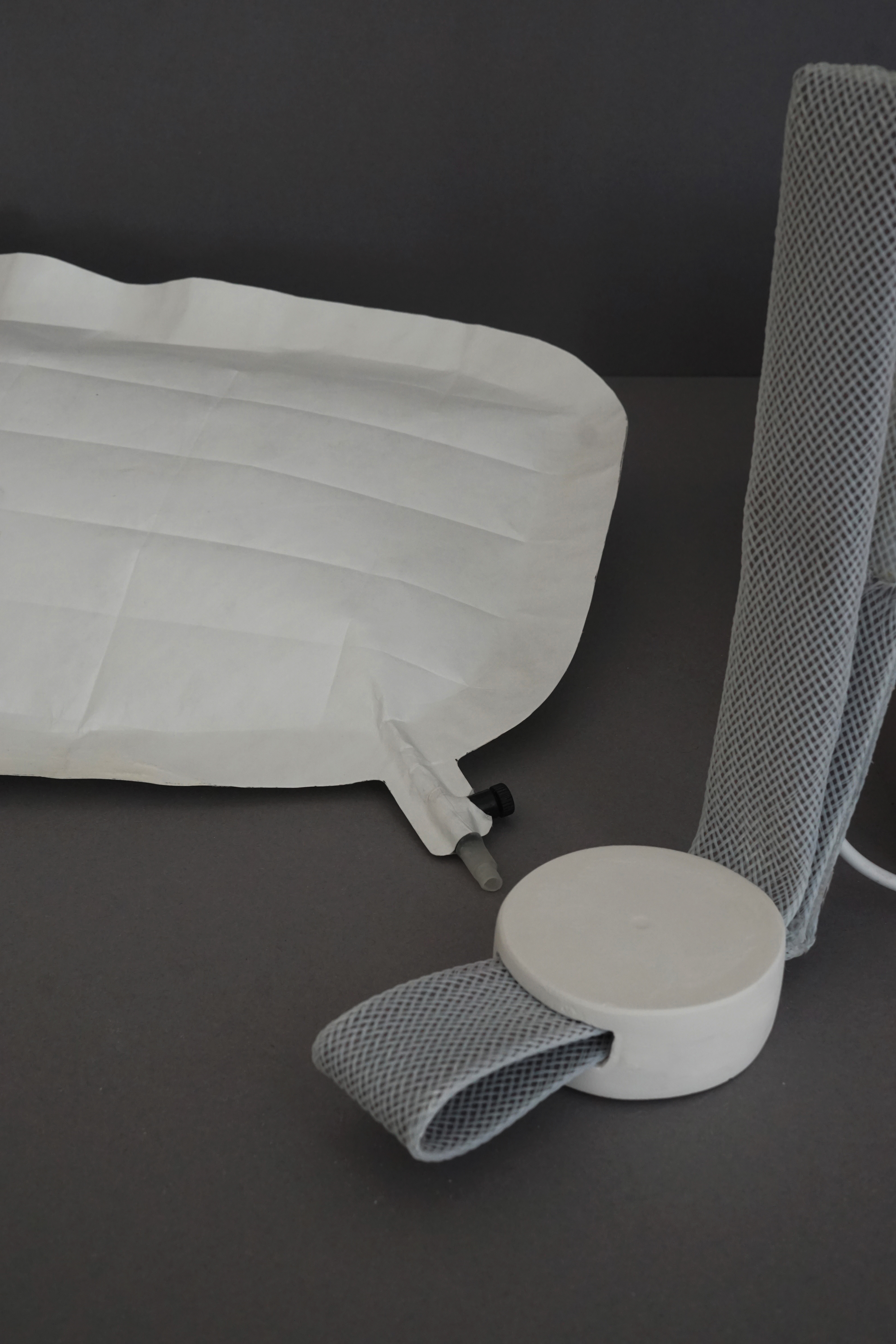 Ein aufblasbarer Leuchtkörper und ein Standfuß, der zugleich Wandhalterung ist, zeichnen das Bild einer in Form und Einsatzbereich flexiblen Leuchte. Die Volumenveränderung reguliert Helligkeit und Lichtstreuung und erzeugt so eine direkte Reaktion auf den Einfluss des Nutzers, die Resonanz. Alle Hauptelemente bestehen aus Polyethylen, sind leicht zu trennen und zu recyceln.